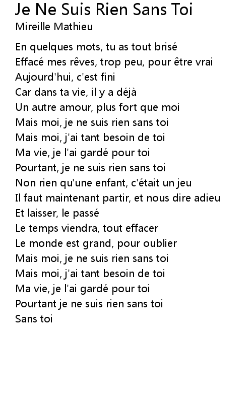 | Song | Je Ne Suis Rien Sans Toi |