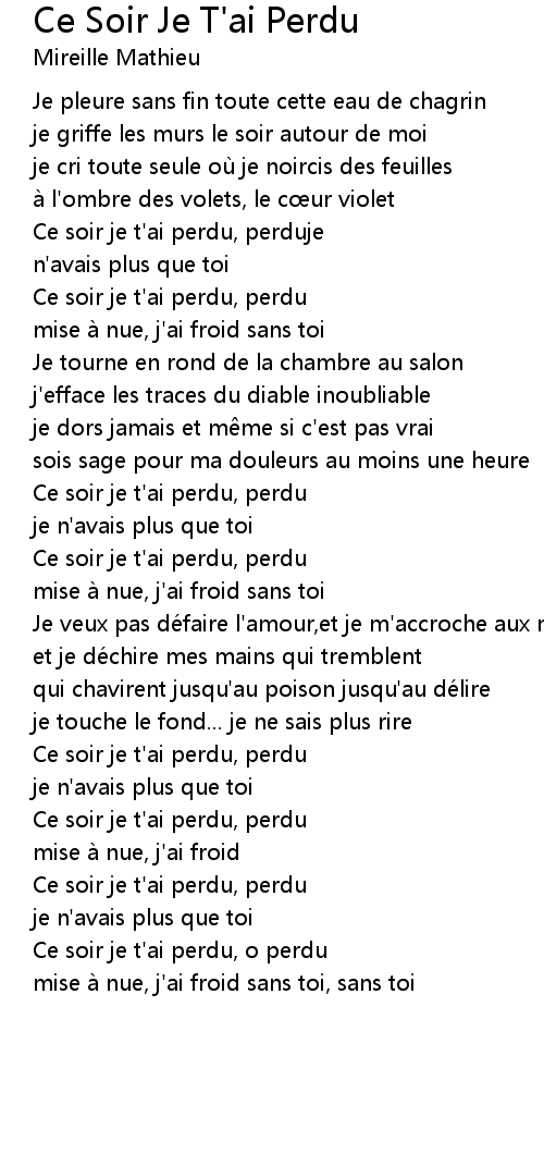 | Je veux pas dé faire l' amour, et je m' accroche aux moindres bruits de ton retour | |
