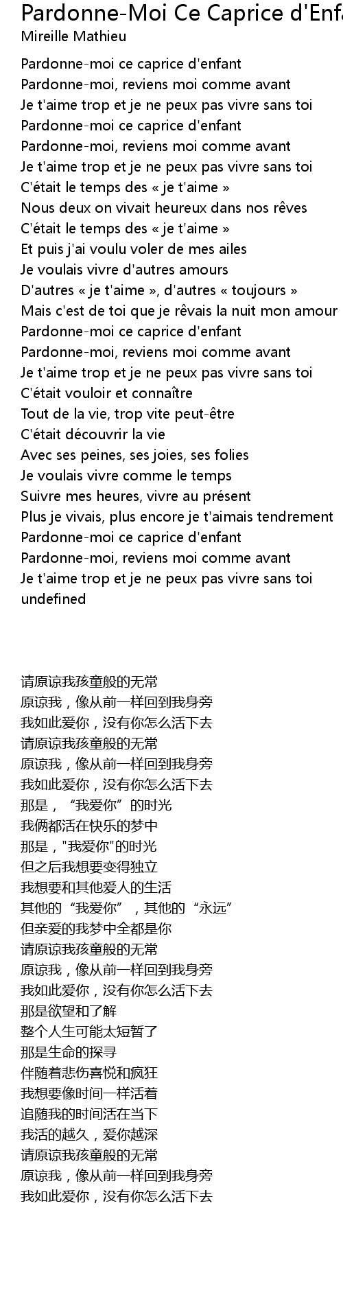 | Song | Pardonne-Moi Ce Caprice d'Enfant |