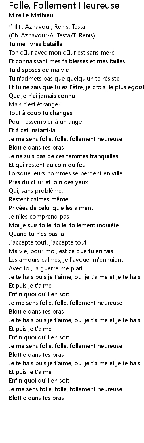 | Je te hais puis je t' aime, oui je t' aime et je te hais | |