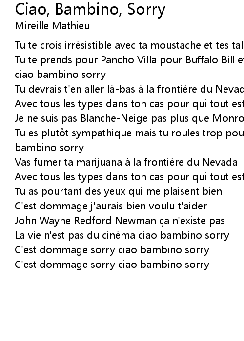 | La vie n' est pas du cine ma ciao bambino sorry | |