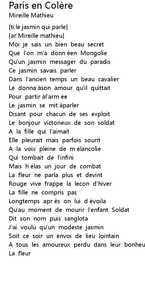 | [00:19.57] | Qu' un jasmin messager du paradis |