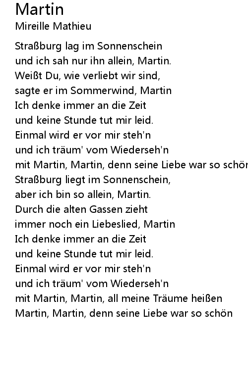 | mit Martin, Martin, denn seine Liebe war so sch n | |