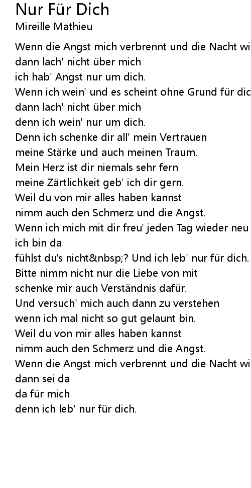 fü hlst du' s nicht nbsp? Und ich leb' nur fü r dich.