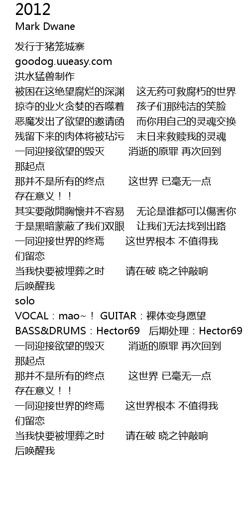 | [01:52.36] | VOCAL: mao! GUITAR: luo ti bian shen yuan wang |