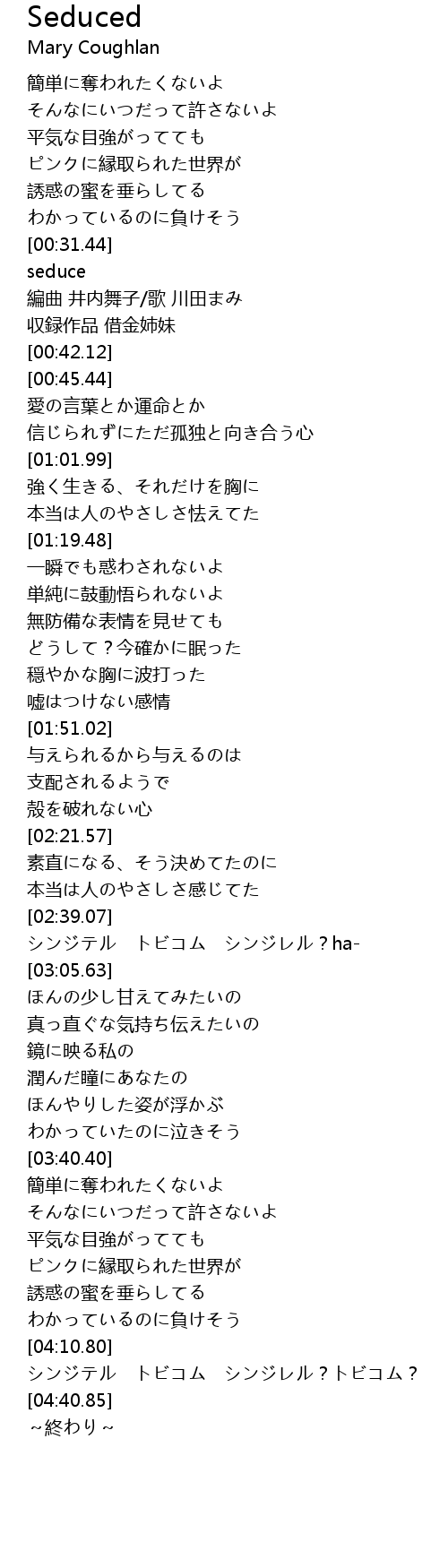 | [03:09.86] | ほんの少し甘えてみたいの |