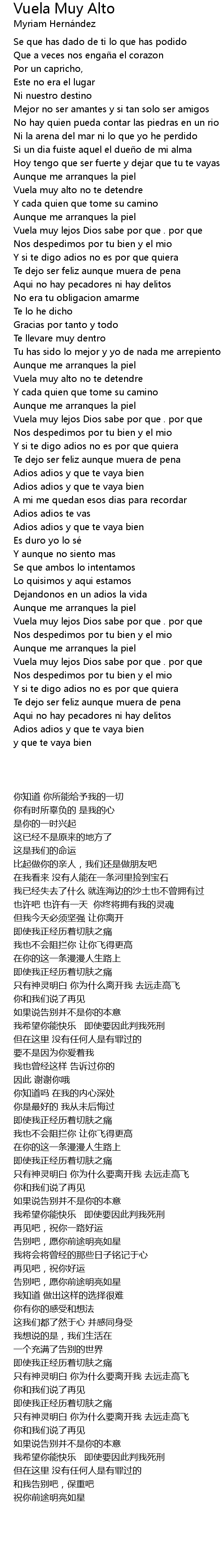 | [02:42.98] | Vuela muy lejos Dios sabe por que . por que |