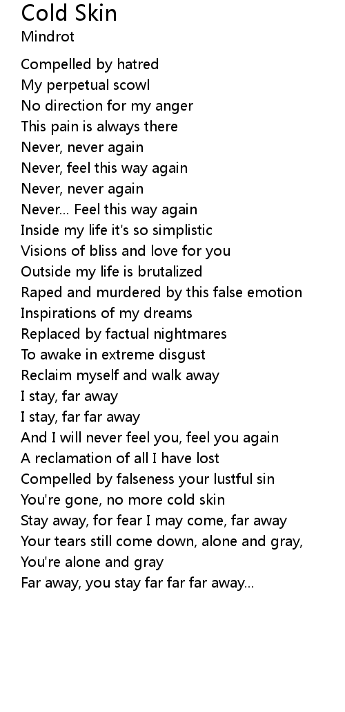 | You're gone, no more cold skin | |