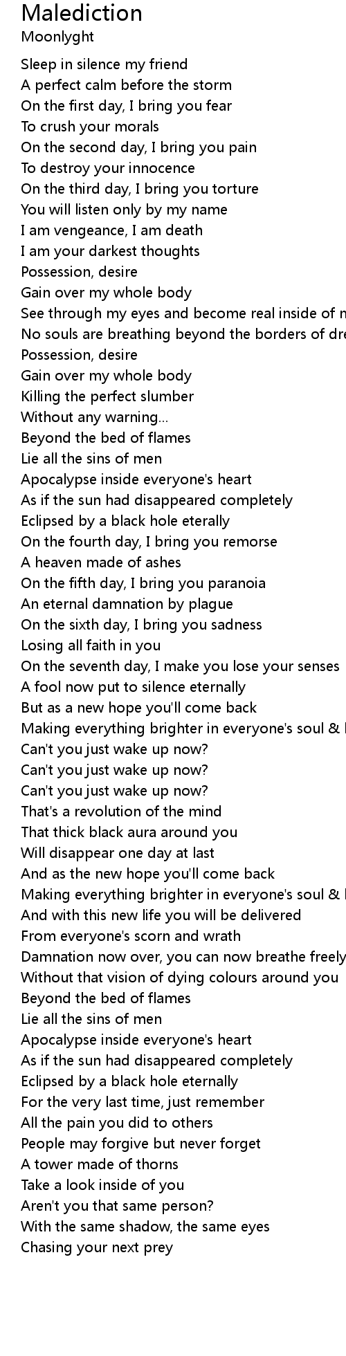 | On the seventh day, I make you lose your senses | |