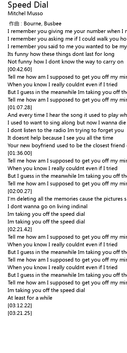 | [00:55.46] | But I guess in the meanwhile Im taking you off the speed dial |