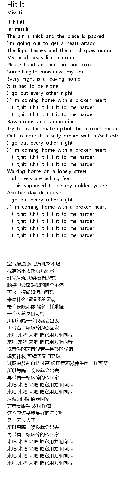 | [01:31.61] | Hit it,hit it,hit it Hit it to me harder |