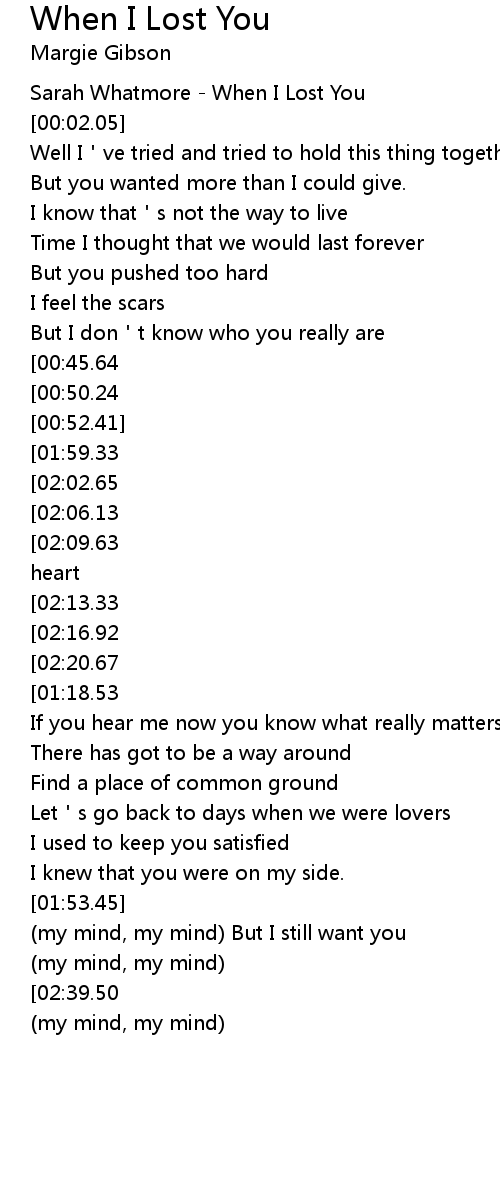 | [00:00.45] | Sarah Whatmore When I Lost You |
