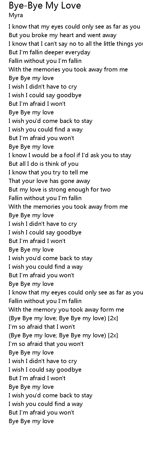 | [2x] | (Bye Bye my love; Bye Bye my love) |