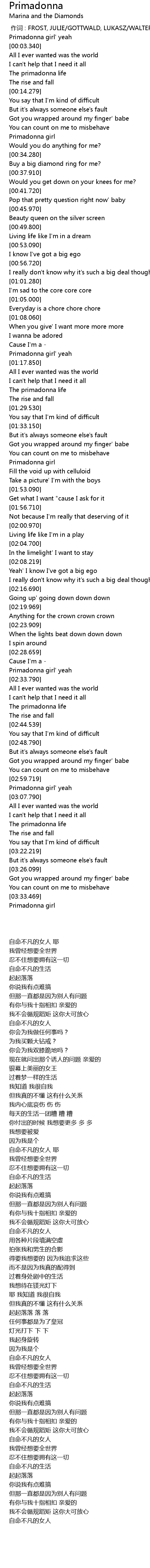 | [03:34.159] | Primadonna girl |