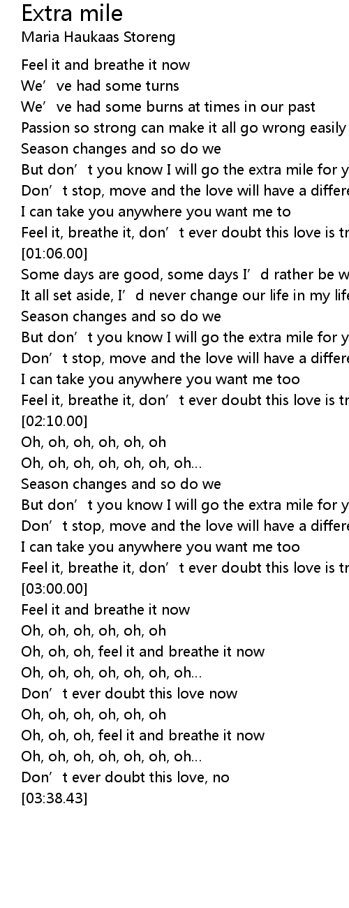 | [00:43.32] | But don’t you know I will go the extra mile for you? |