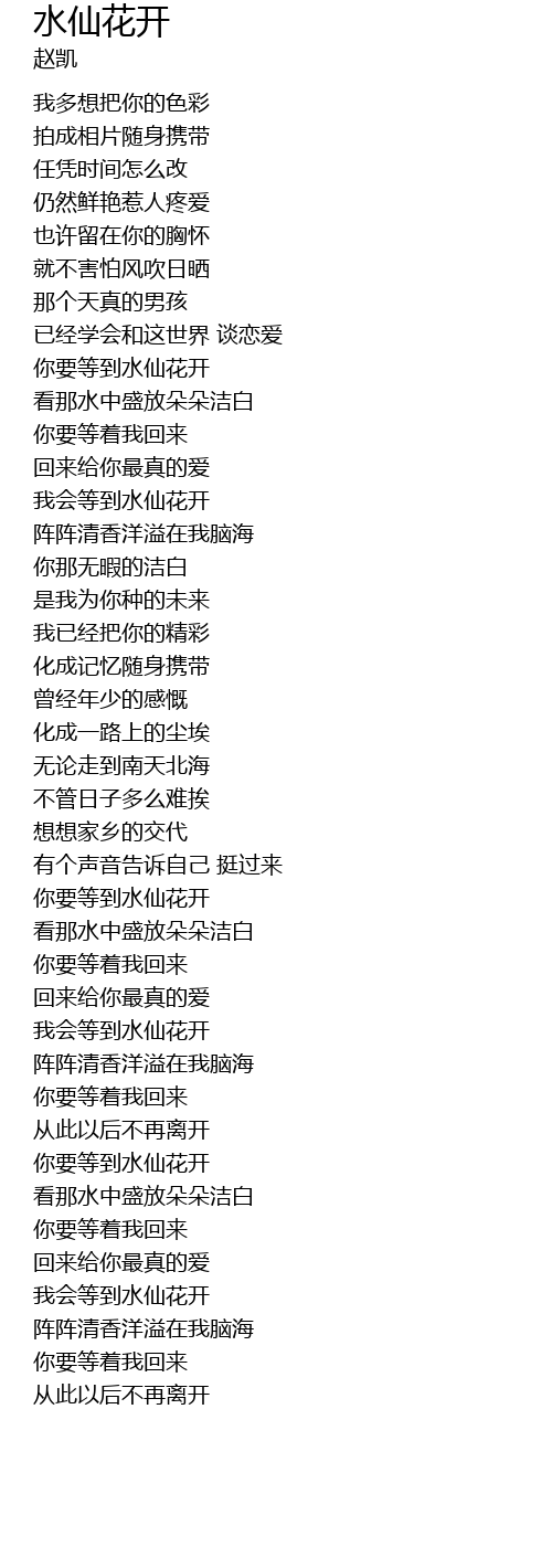| [03:03.650] | nǐ yào děng dào shuǐ xiān huā kāi |