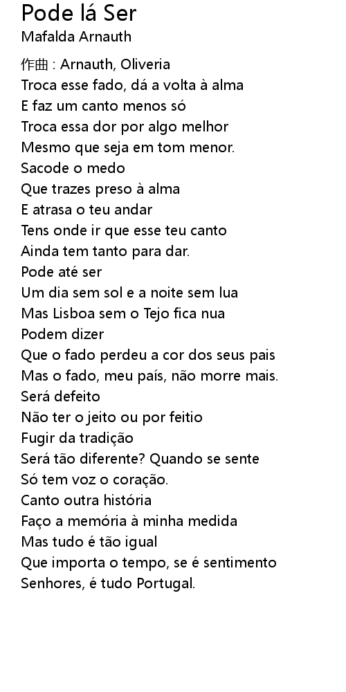 | Mas o fado, meu país, não morre mais. | |