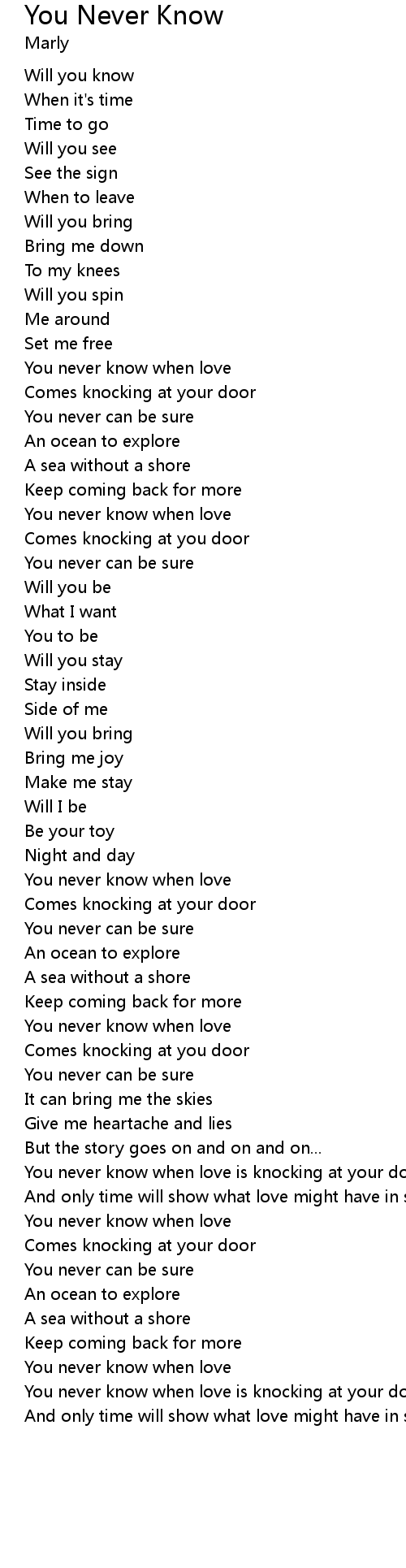 You never know when love |