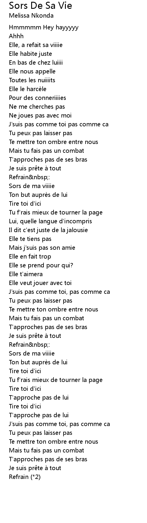 | Song | Sors De Sa Vie |
