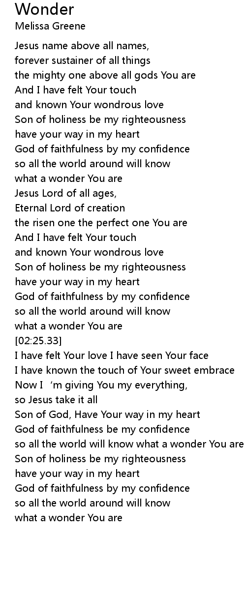 | [02:33.49] | I have felt Your love I have seen Your face |