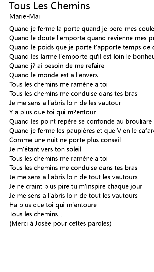 | Song | Tous Les Chemins |