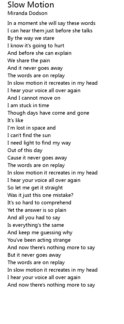 In slow motion it recreates in my head |