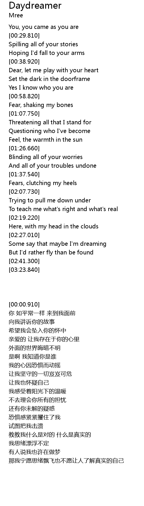 | [02:29.130] | Some say that maybe I'm dreaming |