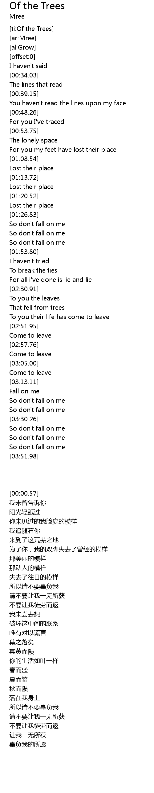 | [01:34.39] | So don't fall on me |