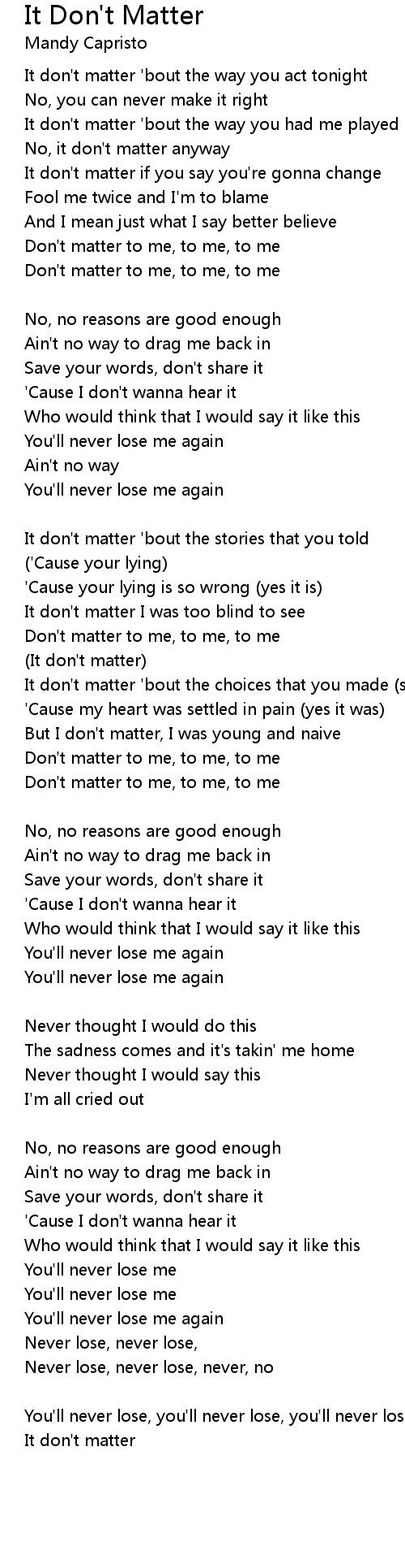 It don't matter if you say you're gonna change |