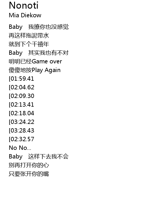 | [03:37.32][01:59.41][00:58.85] | wei he ni hai bu shuo No No |