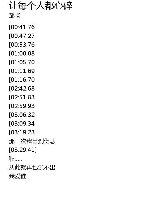 | [04:27.98][02:59.93][01:36.85] | 爱情怎么让每个人都心碎 |