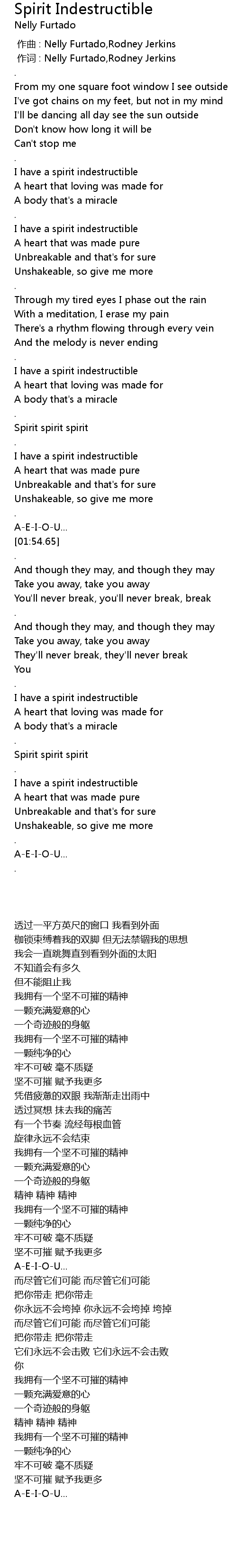 | [00:01.00] | zuò cí : Nelly Furtado, Rodney Jerkins |