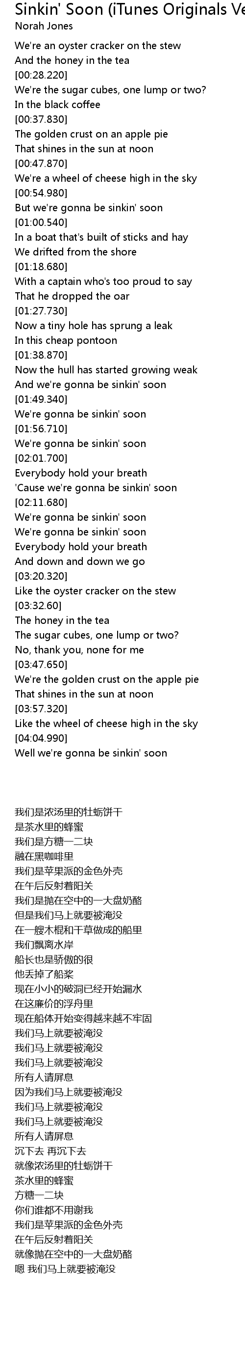Sinkin' Soon (iTunes Originals Version) Lyrics
