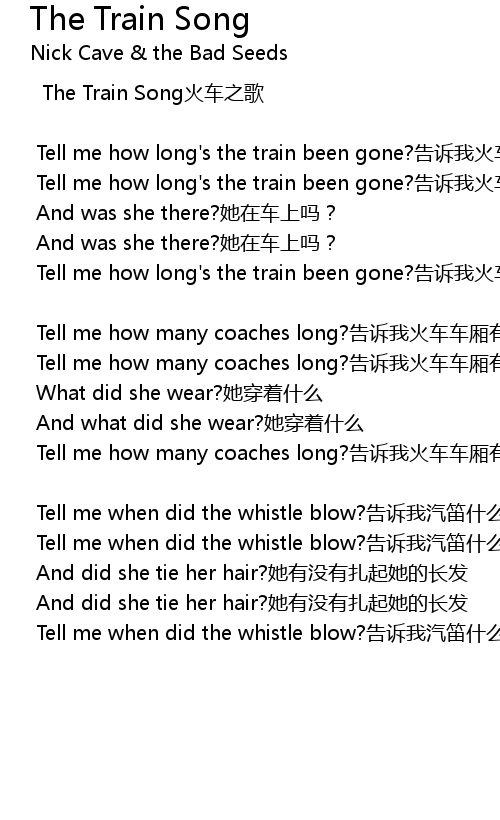 | Tell me how long's the train been gone?告诉我火车离开多久了 | |