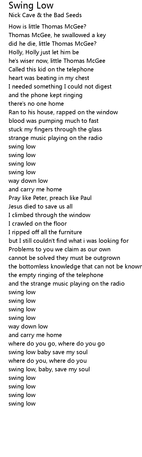 swing low baby save my soul |
