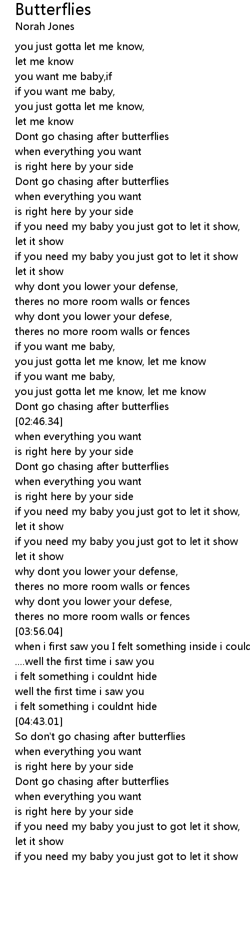So don't go chasing after butterflies |