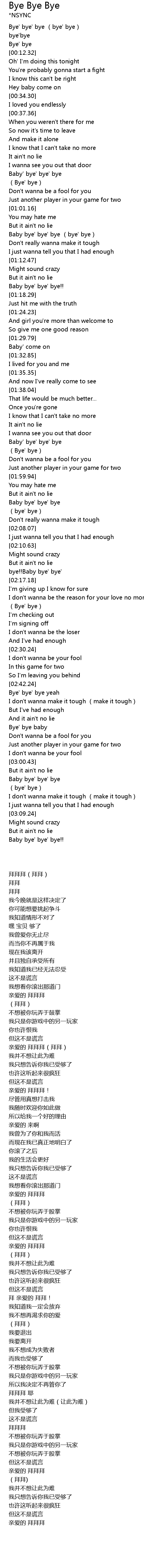 | [00:02.00] | Bye' bye' bye bye' bye |