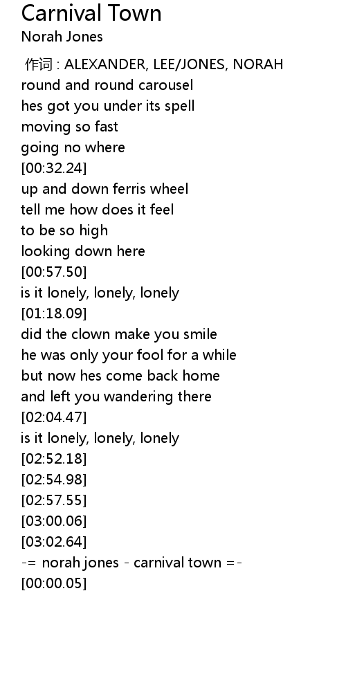 | [00:00.00] | 作词 : ALEXANDER, LEE/JONES, NORAH |