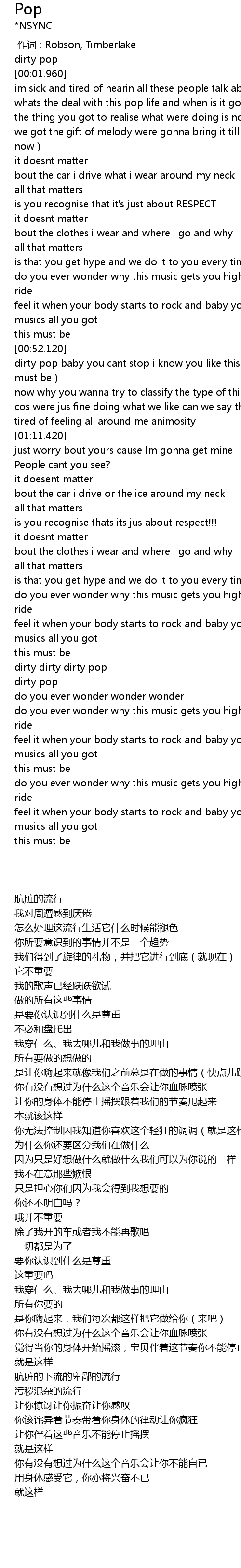 | [00:53.180] | dirty pop baby you cant stop i know you like this dirty pop (this must be) |