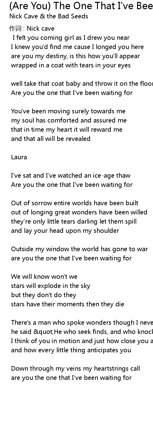 | Are you the one that I' ve been waiting for | |
