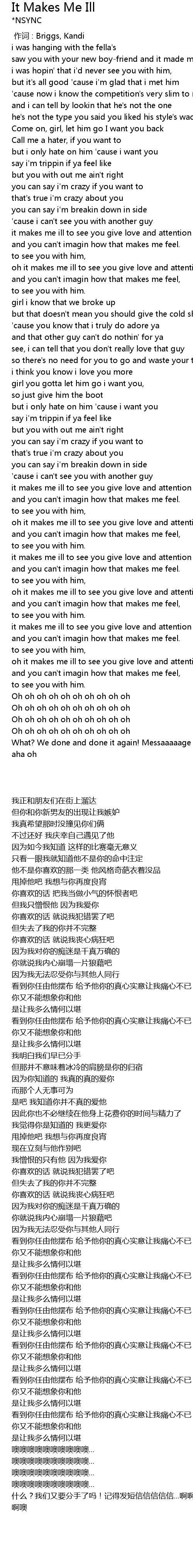 | [02:19.11] | oh it makes me ill to see you give love and attention at his will |