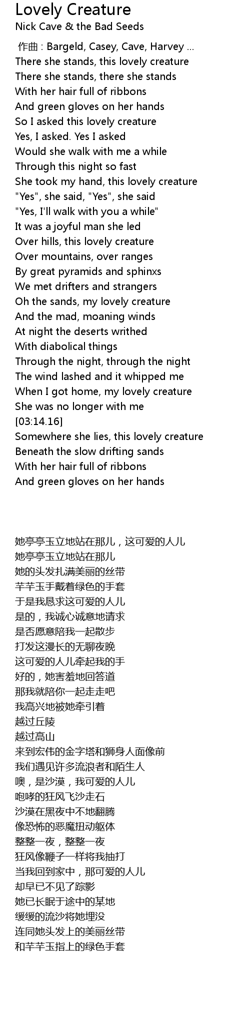 | [00:00.00] | 作曲 : Bargeld, Casey, Cave, Harvey ... |