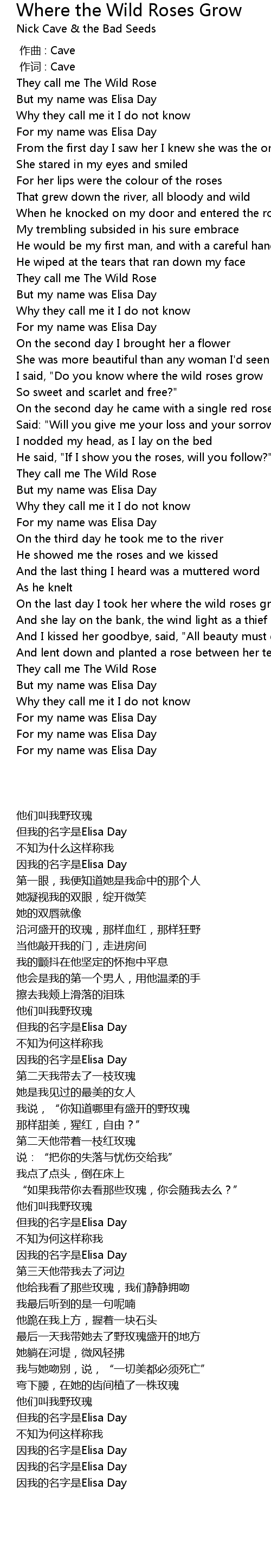 | [00:26.960] | For my name was Elisa Day |