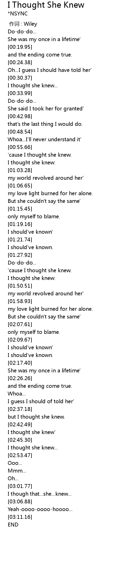 | [00:31.43] | I thought she knew... |