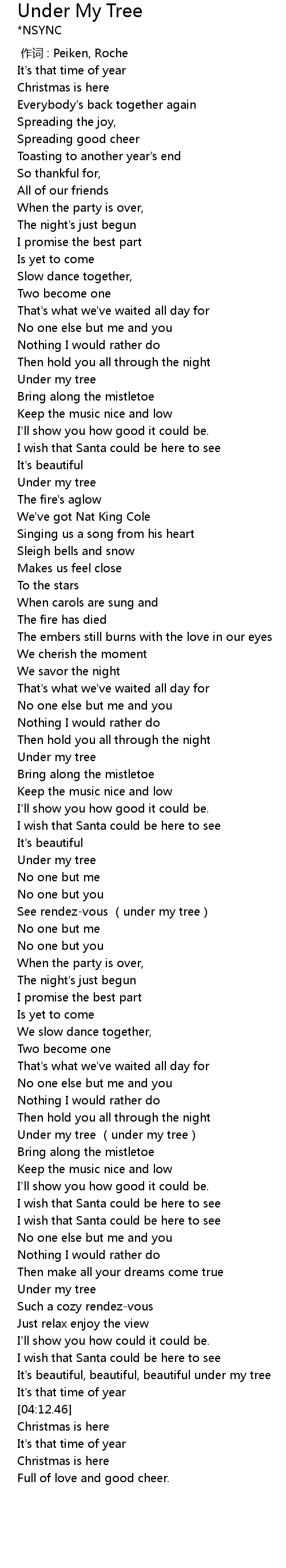 | [04:04.22] | It's beautiful, beautiful, beautiful under my tree |