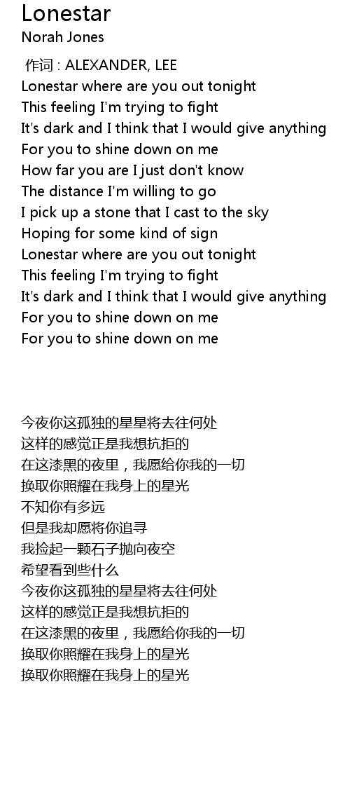 | [00:00.270] | Lonestar where are you out tonight |