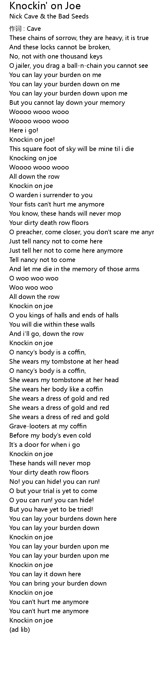 | Knockin on joe | |