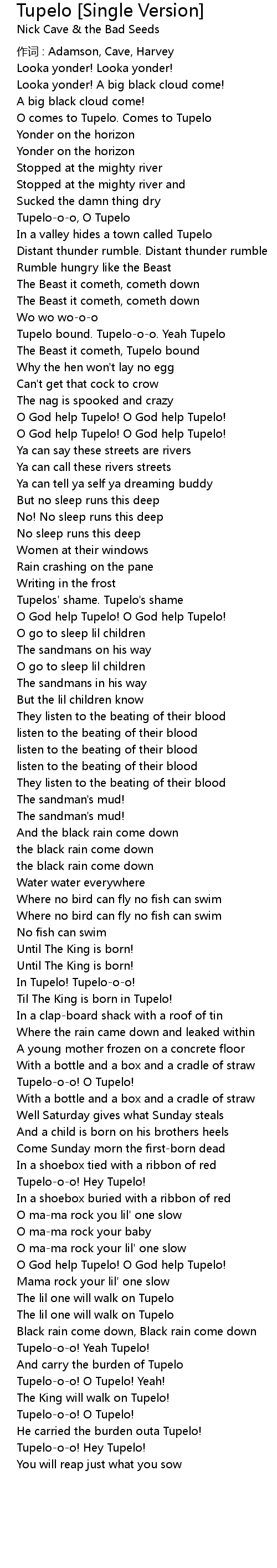 | 作词 : Adamson, Cave, Harvey | |