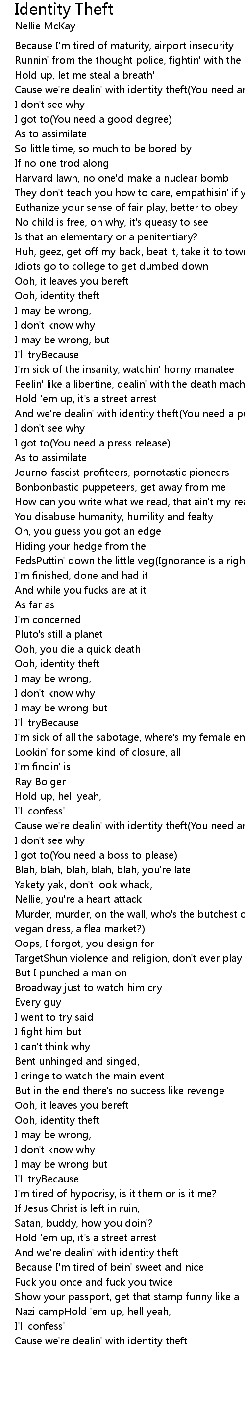 Cause we're dealin' with identity theft(You need an occupation) |