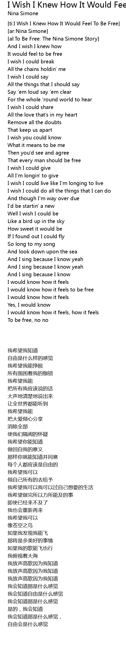 [ti:I Wish I Knew How It Would Feel To Be Free] |